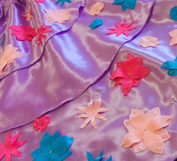 Flores aplicadas a mano con detalles de mostacillas en sus pétalos.
